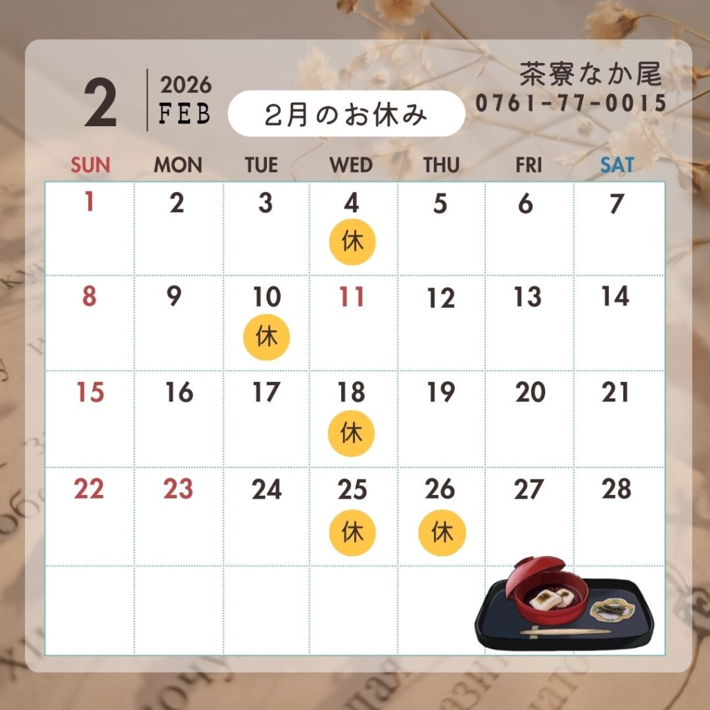 2月11日は(建国記念日・祝日)は水曜日ですが、営業いたしておりますので